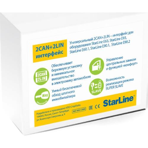 Универсальный 2CAN+LIN интерфейс, обеспечивающий бережную установку и минимальное вмешательство в электронику на современных автомобилях Предназначен для использования в моделях StarLine: E60, StarLine E63, StarLine E90.1, StarLine E93
